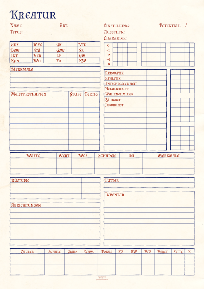 - Splittermond Kreaturenbogen (pdf)